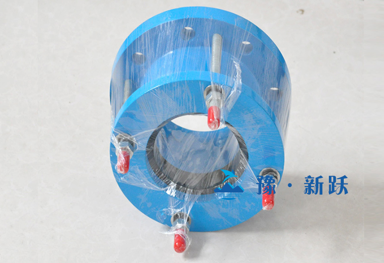 法蘭松套伸縮接頭安裝在管道上后,擰緊螺母彈性密封圈,在螺母壓蓋的作用下依靠相互斜度,緊壓在管子外圈密封和連接作用。當溫度變化時管子能在接頭中間自由的伸縮,當地基下沉,管子能偏斜,并確保密封無滲漏,從而起到自動補償之目的。